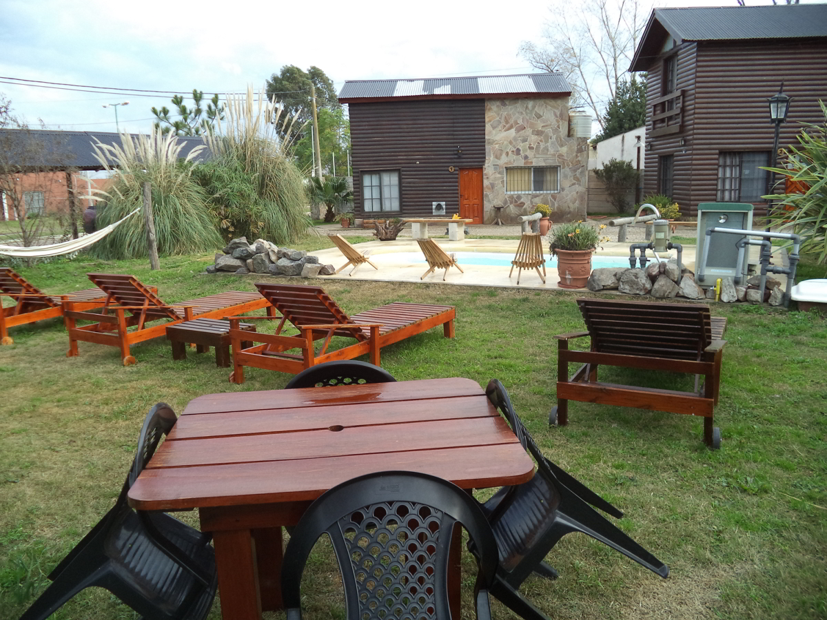 Nos encontramos sobre calle de asfalto a una cuadra del Rio y 4 cuadras de Termas del salado. Contamos con Estacionamiento Techado con capacidad para 1 vehículo por cabaña o monoambiente. / Piscina Climatizada de Noviembre a Marzo. / Bandeja de Bienvenida / Ropa Blanca / WIFI acceso en todo el predio. / TV por Cable. Cada cabaña o monoambiente cuenta con una carpeta con planos del pueblo, bares, restaurantes, delivery y demás para que se pueda mover sin inconvenientes. Complejo manejado íntegramente por sus dueños que viven en el mismo lugar para brindarle la atención e información que necesite.