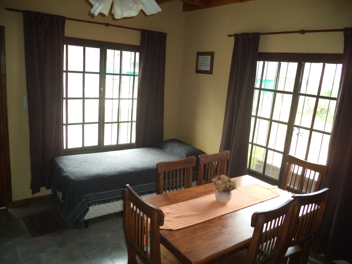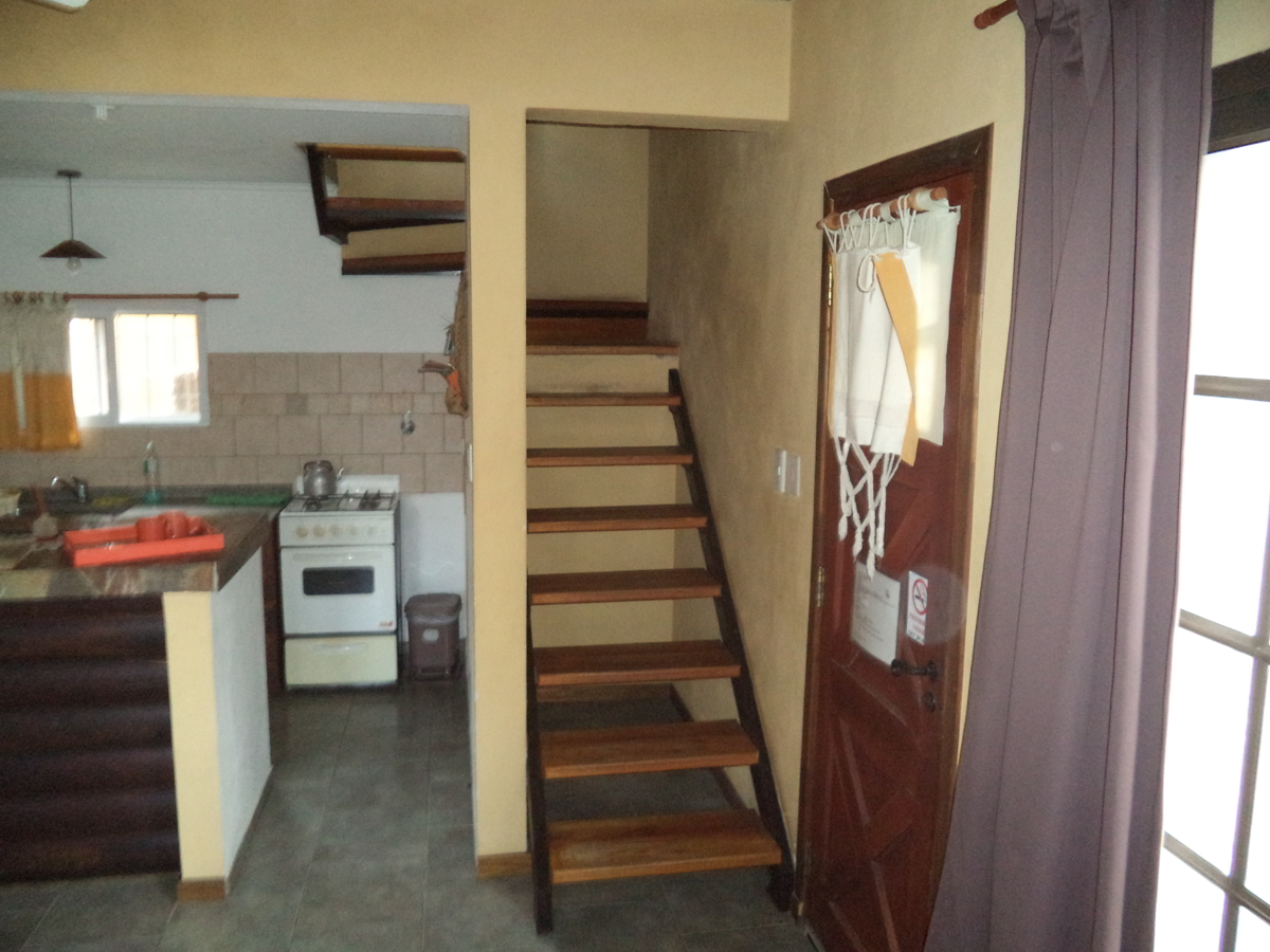 Capacidad máxima, hasta 3 personas. Cabaña distribuida en dos plantas, contando en planta baja con cocina comedor, y en la planta alta con dormitorio para los huéspedes y baño.