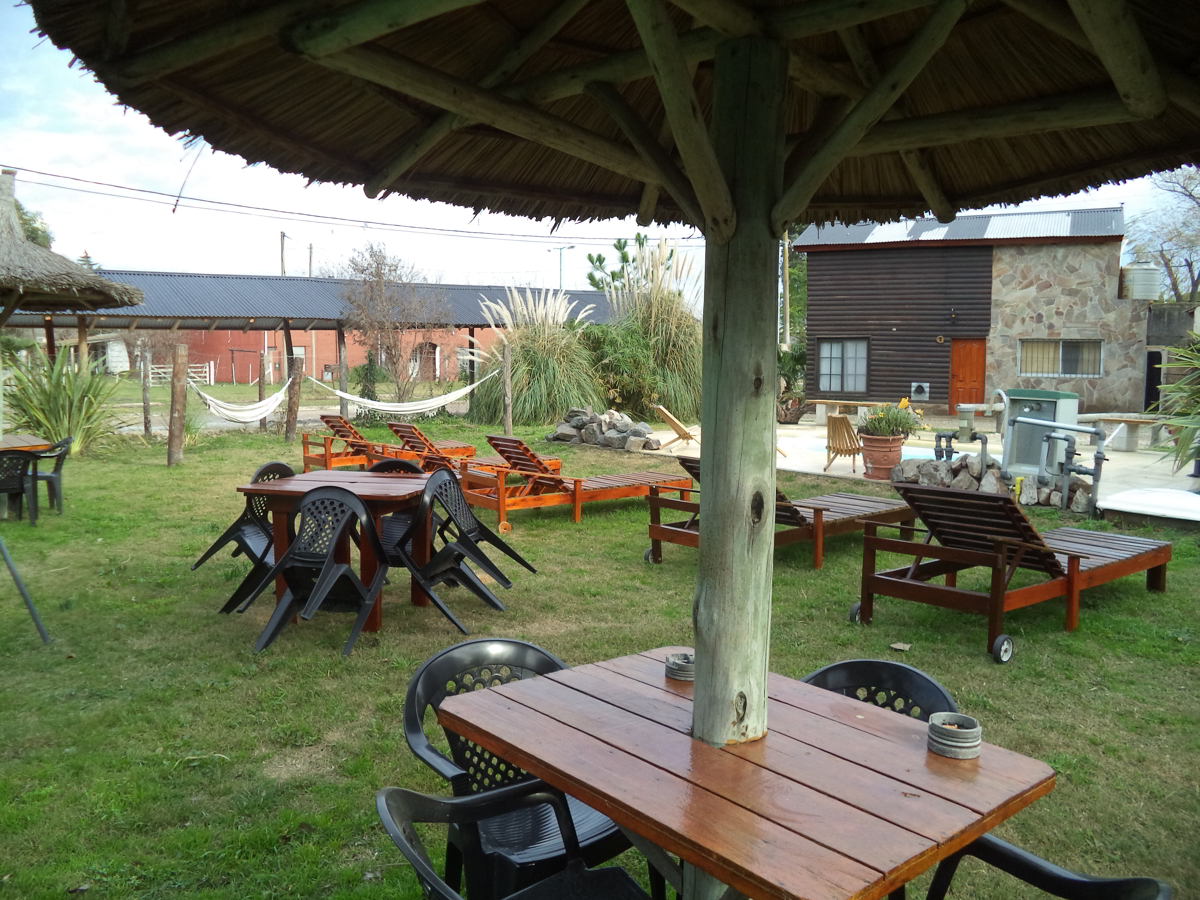 Nos encontramos sobre calle de asfalto a una cuadra del Rio y 4 cuadras de Termas del salado. Contamos con Estacionamiento Techado con capacidad para 1 vehículo por cabaña o monoambiente. / Piscina Climatizada de Noviembre a Marzo. / Bandeja de Bienvenida / Ropa Blanca / WIFI acceso en todo el predio. / TV por Cable. Cada cabaña o monoambiente cuenta con una carpeta con planos del pueblo, bares, restaurantes, delivery y demás para que se pueda mover sin inconvenientes. Complejo manejado íntegramente por sus dueños que viven en el mismo lugar para brindarle la atención e información que necesite.