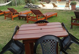 Alrededor de la misma se encuentran reposeras, sillas o bancos para uso común de todos los huéspedes.